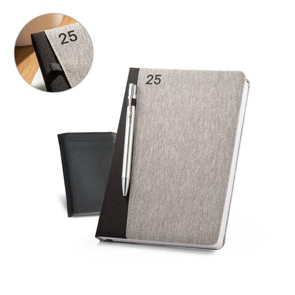 Agenda B5 LarssonReferência AGE-131Quantidade mínima 50 ResumoAgenda B5 em rPET. Com suporte para esferográfica e marcador em fita. Fornecida com bolsa de non-woven. Esferográfica não inclusa. 175 x 245 mm - Bolsa: 220 x 270 mm PERSONALIZADO. CINZAQuantidade 1 Selecione 50 Informe outra quantidade min. 50 Incluir item no orçamento Voltar