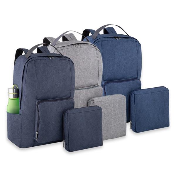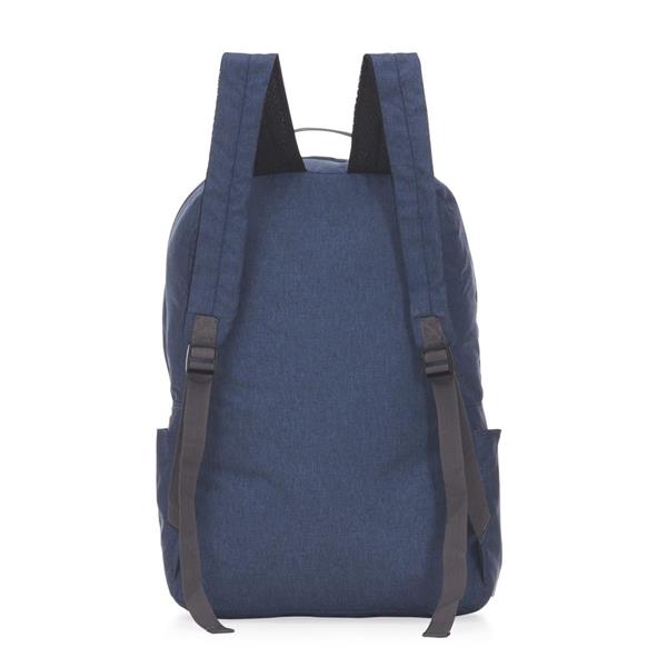 Mochila dobrável confeccionada em Poliéster. Compacta e com abertura prática, possui compartimento principal, bolsos laterais e bolso frontal – compartimento responsável por acomodar a mochila. Para armazenar a mochila no compartimento basta virar o bolso frontal do avesso e dobrar o tecido para melhor acomodação do material. A mochila dispõe de alças ajustáveis para as costas com revestimento espumado.