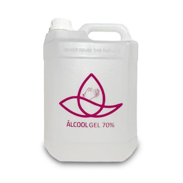 Álcool em Gel Galão 5 Litros 70% antisséptico para higienização a seco das mãos e superfícies. Combate 99,9% dos germes e bactérias e hidrata a pele com solução protetora da pele, diminuindo o impacto do ressecamento provocado pelo álcool. 280 x 190 x 140
