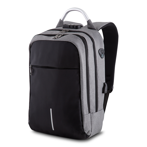 Mochila p/ NotebookReferência MOCHILA-146Quantidade mínima 50 ResumoUma mochila moderna com bastante espaço interno incluindo porta notebook, possui fechamento em cadeado com segredo. Alça de mão em metal, fita reflexiva, um bolso frontal grande. Divisórias internas para canetas, documentos e telefone celular. Alça almofadada. Saída USB e fone de ouvido. Tecido em poliéster. Dimensão do Produto: 45x28x14cm (AxLxP) Peso do Produto: 0,680kg PERSONALIZADA CINZAQuantidade 1 Selecione 50 Informe outra quantidade min. 50 MOCHILA-146Quantidade 1 Selecione 50 Informe outra quantidade min. 50 PRETAQuantidade 1 Selecione 50 Informe outra quantidade min. 50 Incluir item no orçamento Voltar