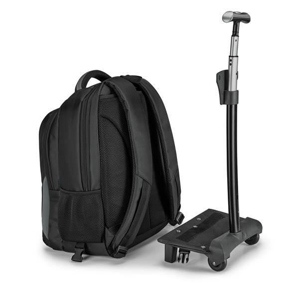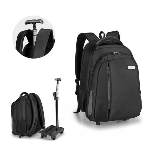 Mochila Trolley Luxo. MIAMIReferência MOCHILA-116Quantidade mínima 50 ResumoMochila trolley para notebook. Nylon 999. Material à prova de água. Compartimento principal almofadado para notebook até 17''. Segundo compartimento forrado e com diversos bolsos. Bolso frontal com zipper e bolsos laterais com tela. Com estrutura removível e 2 rodas. Pega extensível em alumínio, com mola (altura da pega estendida: 550 mm). Chapa metálica removível com ímã para fácil gravação. 350 x 460 x 210 mm - Chapa: 50 x 20 mm PERSONALIZADO MOCHILA-116Quantidade 1 Selecione 50 Informe outra quantidade min. 50 Incluir item no orçamento Voltar
