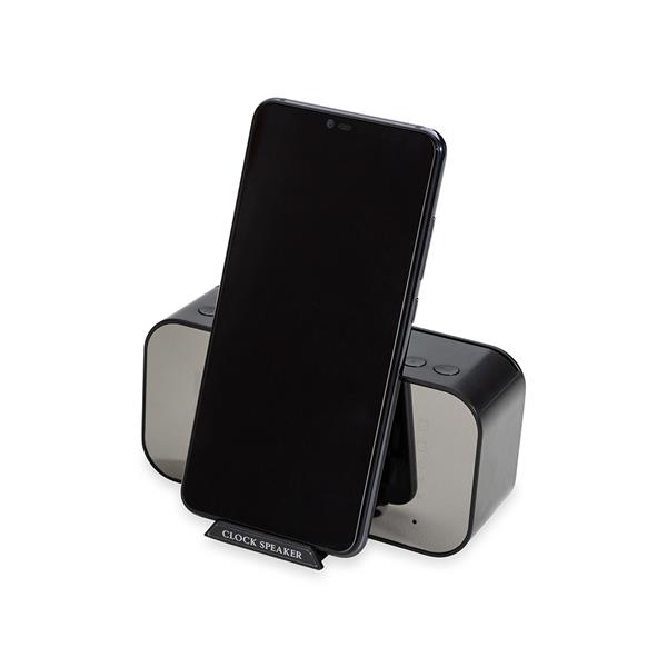 Caixa de Som Multimídia com Relógio e Suporte para Celular