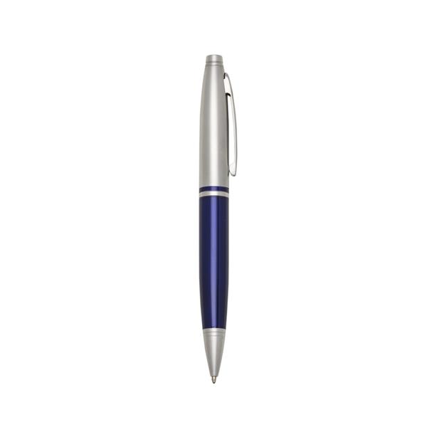Caneta metal prata nas versões brilhante e fosca com detalhes coloridos e dois anéis na parte superior, parte inferior em relevo. Clip metal e anel central na mesma cor da caneta, aciona por giro. Altura : 135cm Largura : 16cm Medidas aproximadas para gravação (CxL): 3,8 cm x 1,1 cm Tamanho total aproximado (CxL): 13,5 cm x 1,6 cm Peso aproximado (g): 29 PERSONALIZADA