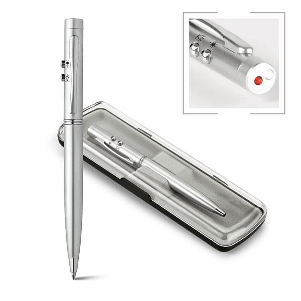 Esferográfica. Metal. Com ponteira laser e LEDReferência CDM-153Quantidade mínima 50 ResumoEsferográfica. Metal. Com ponteira laser e LED. Incluso 3 pilhas LR41. 1,5km de escrita. Em estojo com forro de veludo. ø10 x 131 mm - Estojo: 170 x 50 x 20 mm PERSONALIZADA CDM-153Quantidade 1 Selecione 50 Informe outra quantidade min. 50 Incluir item no orçamento Voltar