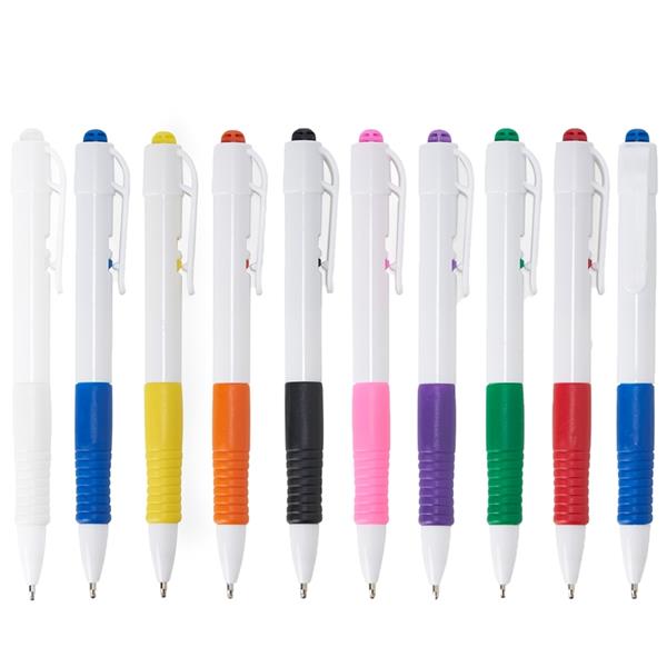 Caneta Plástica/ EmborrachadoReferência CP-193Quantidade mínima 50 ResumoCaneta plástica branca com detalhes coloridos. Possui parte inferior emborrachada colorida com relevo. Aciona por clique. Altura : 13,8 cm Largura : 1,5 cm Medidas aproximadas para gravação (CxL): 4,7 cm x 1,1 cm Peso aproximado (g): 8 PERSONALIZADO! Cor * Amarelo Azul Branco Laranja Roxa Verde Vermelho Quantidade 1 Selecione 50 Informe outra quantidade min. 50 Incluir item no orçamento Voltar