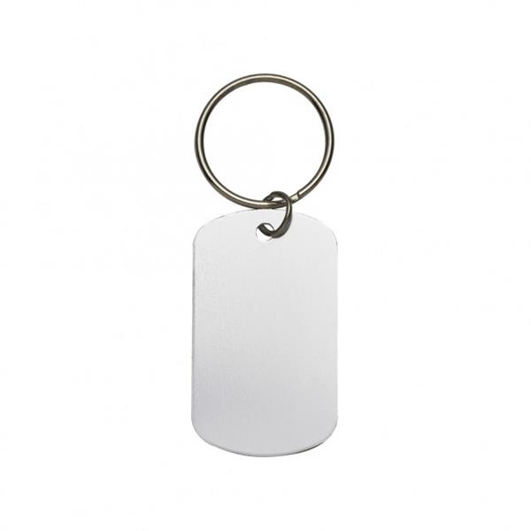 Chaveiro plaquinha metálica. Formato retangular com bordas arredondadas de frente e verso liso, pintura fosca. Tamanho total aproximado (CxL): 8 cm x 2,9 cm (com argola) Peso aproximado (g): 7 PERSONALIZADO