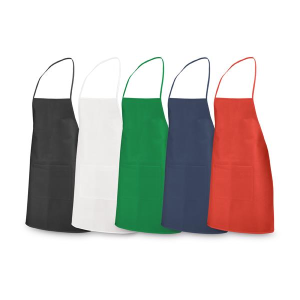 Avental. Non-woven: 80 g/m². Com 1 bolso. 490 x 685 mm - Bolso: 230 x 175 mm PERSONALIZADO
