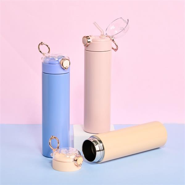 Garrafa Térmica feito em inox 304 com parede dupla e capacidade de 500ml. Possui tampa protetora com botão de acionamento para o bico, alça e acompanha um canudo. Altura : 24,1 cm Largura : 6,5 cm Circunferência : 20,7 cm