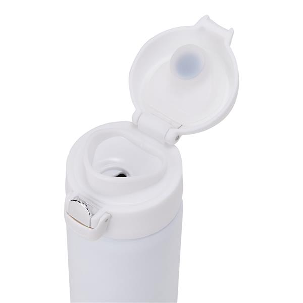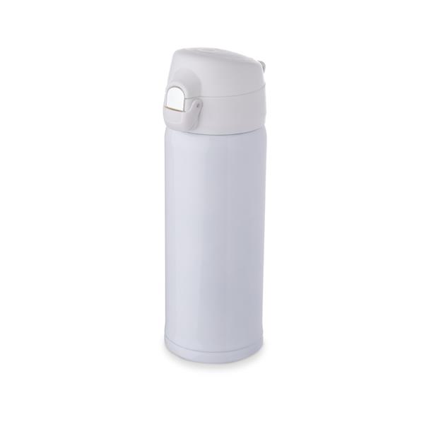 Garrafa térmica parede dupla feita inox 304, capacidade de 400ml. Tampa de polipropileno com botão de acionamento e trava de segurança. Altura : 20,2 cm Largura : 7,4 cm Circunferência : 20,8 cm Tamanho total aproximado (CxL): Diâmetro sem tampa 4,8 cm Peso aproximado (g): 235