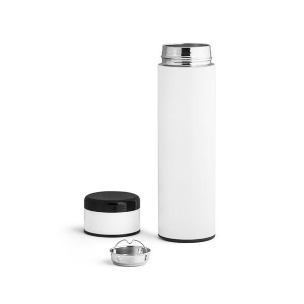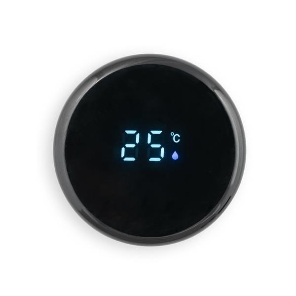 Garrafa térmica de 450ml com corpo duplo em aço inox. A tampa tem incorporado um termômetro digital que permite, com um simples toque, saber a temperatura do líquido no interior do termo. Incluso na tampa um sistema de fácil acesso à bateria para substituir quando necessário. Capacidade da bateria: CR2450. Fornecido em caixa presente preta. ø65 x 235 mm - Caixa: 73 x 73 x 270 mm PERSONALIZADO!