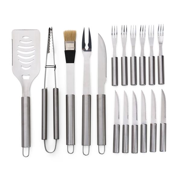 Kit churrasco com 17 peças em inox, acompanha maleta de alumínio.