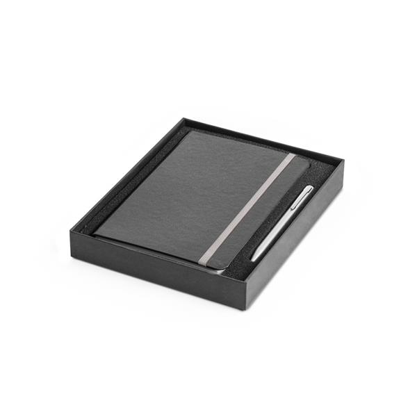 Kit de Caderno A5 e EsferográficaReferência KE-132Quantidade mínima 1 ResumoConjunto esferográfica e caderno A5. A esferográfica é em alumínio com clipe de ferro e é de mecanismo twist com escrita a azul. O caderno A5 tem capa rígida, fita separadora, elástico, bolso interior e 80 folhas pautadas de cor marfim. Conjunto fornecido em caixa de oferta. Esferográfica: ø10 x 138 mm - Caderno: 137 x 210 mm - Caixa: 190 x 240 x 30 mm. KE-132Informe outra quantidade Incluir item no orçamento Voltar