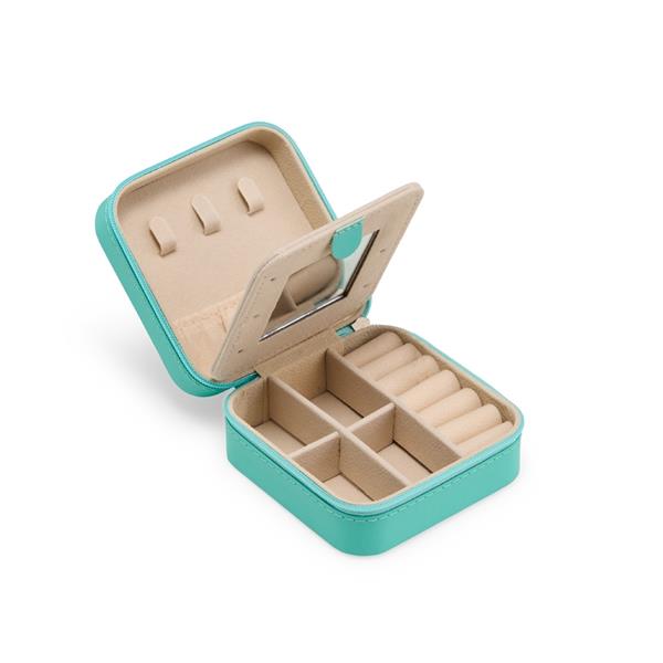 Organize anéis, brincos, colares, outros acessórios e o que mais quiser no nosso porta-joias com espelho. Suas divisórias são bem marcadas e cabem diversos itens, o espelho além de permitir dar aquela olhada no visual, também funciona como uma divisória entre o compartimento superior e inferior interno. Uma surpresa em espaço compacto! Altura : 4,7 cm Largura : 9,6 cm Comprimento : 9,9 cm