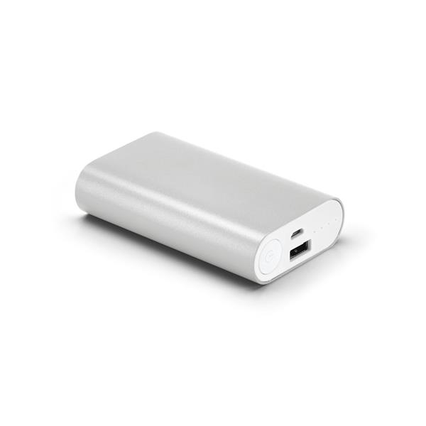 Bateria portátil em alumínio. Bateria de lítio com capacidade de 4.000 mAh, tempo de vida = 500 ciclos e com entrada/saída 5V/1A. Incluso cabo USB/micro USB para carregar a bateria. Fornecida em caixa presente. 91 x 56 x 24 mm